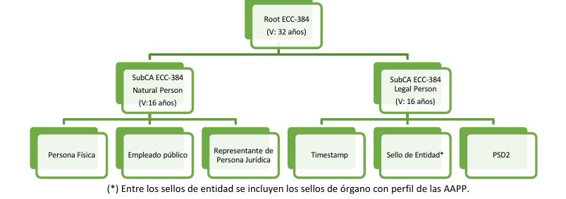 - ECC Root CA P-384 with SHA384 digest algorithm para certificados cualificados.