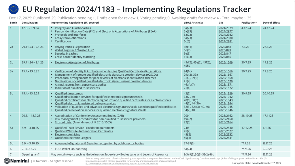 La Comisión Europea ha publicado cuatro nuevos reglamentos de ejecución en el Diario Oficial de la Unión Europea del 17 de diciembre. Ya son varias rondas de actos de ejecución, que comenzaron en diciembre de 2024, y se alcanza la publicación de 26 actos de ejecución.