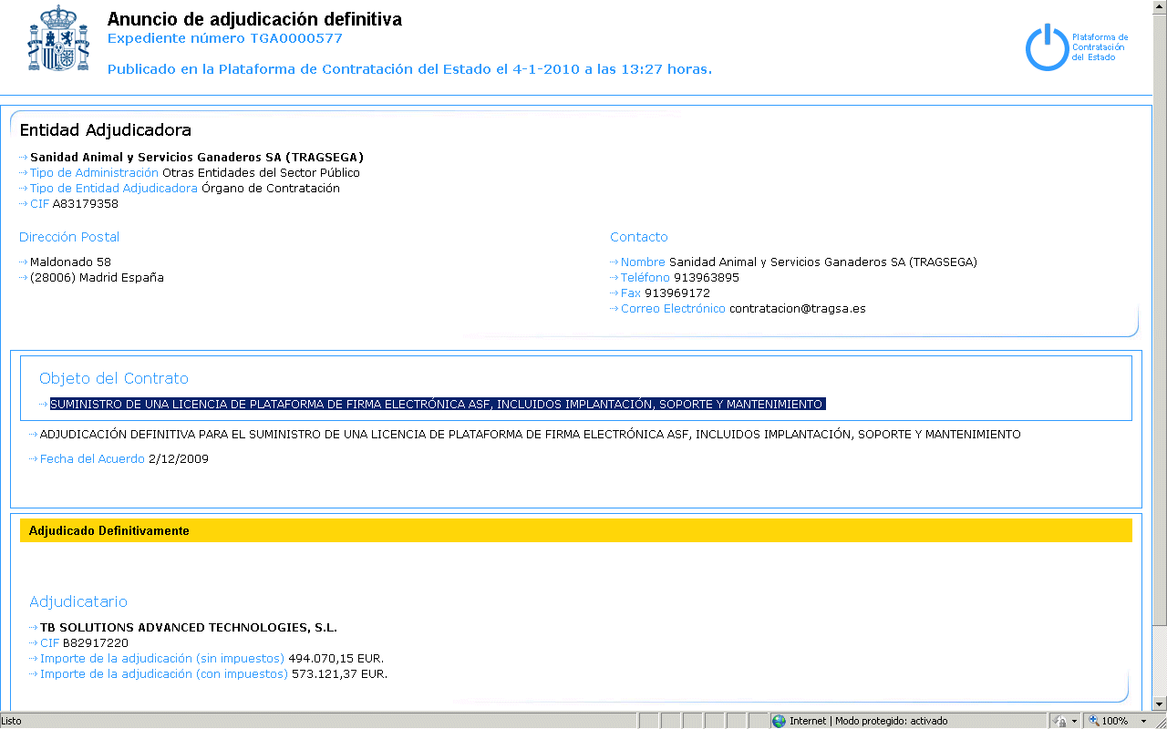 Ciertamente, el producto ASF es una buena plataforma de firma electrónica, como lo son Trusted-X, SIAVAL o BackTrust. Pero creo que no es de recibo que la licitación mencione de forma expresa la adquisición de un producto concreto y ni siquiera mencione los requerimientos que el producto debe satisfacer. Y aun sorprende más la cuantía, que excede en mucho lo habitual en estas licitaciones. ¿Alguien conoce la explicación?