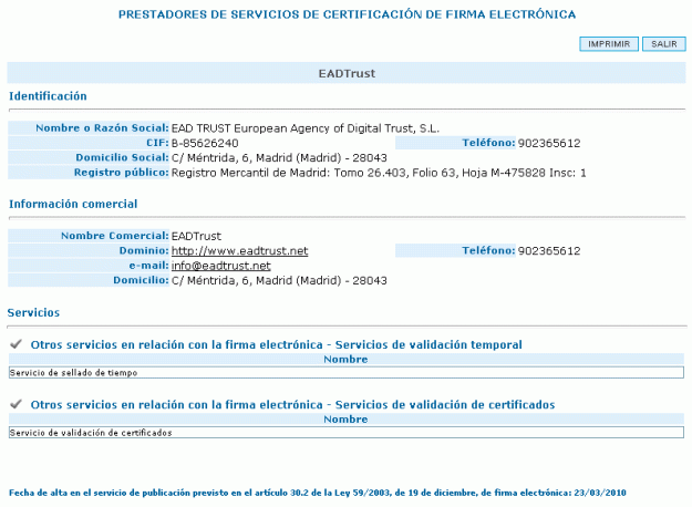 - Las personas físicas o jurídicas que, además de expedir certificados al público, presten otros servicios relacionados con la firma electrónica, como los de consignación de fecha y hora, los de directorio o los de archivo de documentos electrónicos.