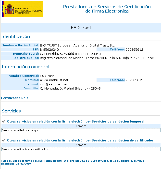 Logo EAD Trust EADTrust ha definido un servicio de comprobación de contenidos en las sedes electrónicas de las empresas («Publicación Fehaciente») que se ha usado ya en relación con las convocatorias de Juntas de Accionistas.